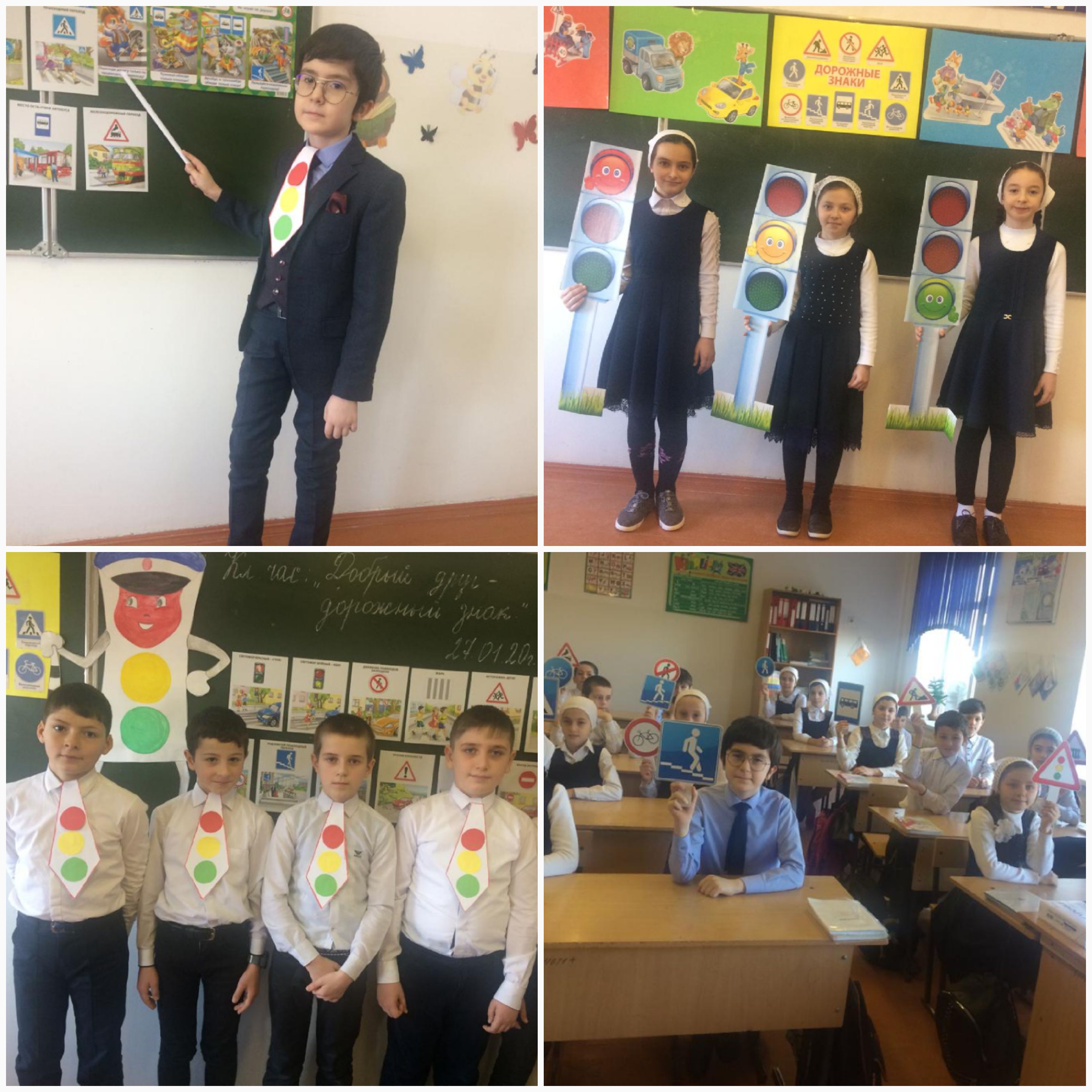 27.01.2020Согласно рекомендательным письмам УГИБДД МВД по ЧР , школьной комплексной Программе безопасности в МБОУ"СОШ 1с.Алхан-Кала" 27.01.2020г.классный руководитель 4"а" Кадырова А.А. подготовила и провела классный час:"Добрый друг-дорожный знак!" Цель: 1)выработать у детей представление об улицах и дорогах как о потенциально-опасном пространстве, где нужно проявлять максимум внимания и соредоточенности; 2)закрепить знания детей о правилах дорожного движения и профилактика детского дорожного травматизма среди школьников