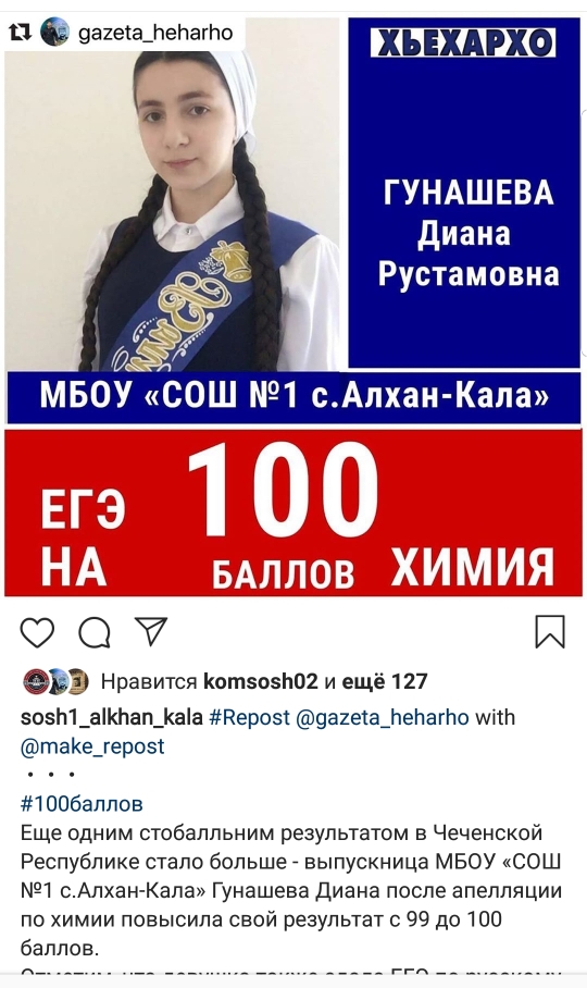 Гунашева Диана 100 баллов по химии,86 баллов по биологии,89 баллов по русскому языку.