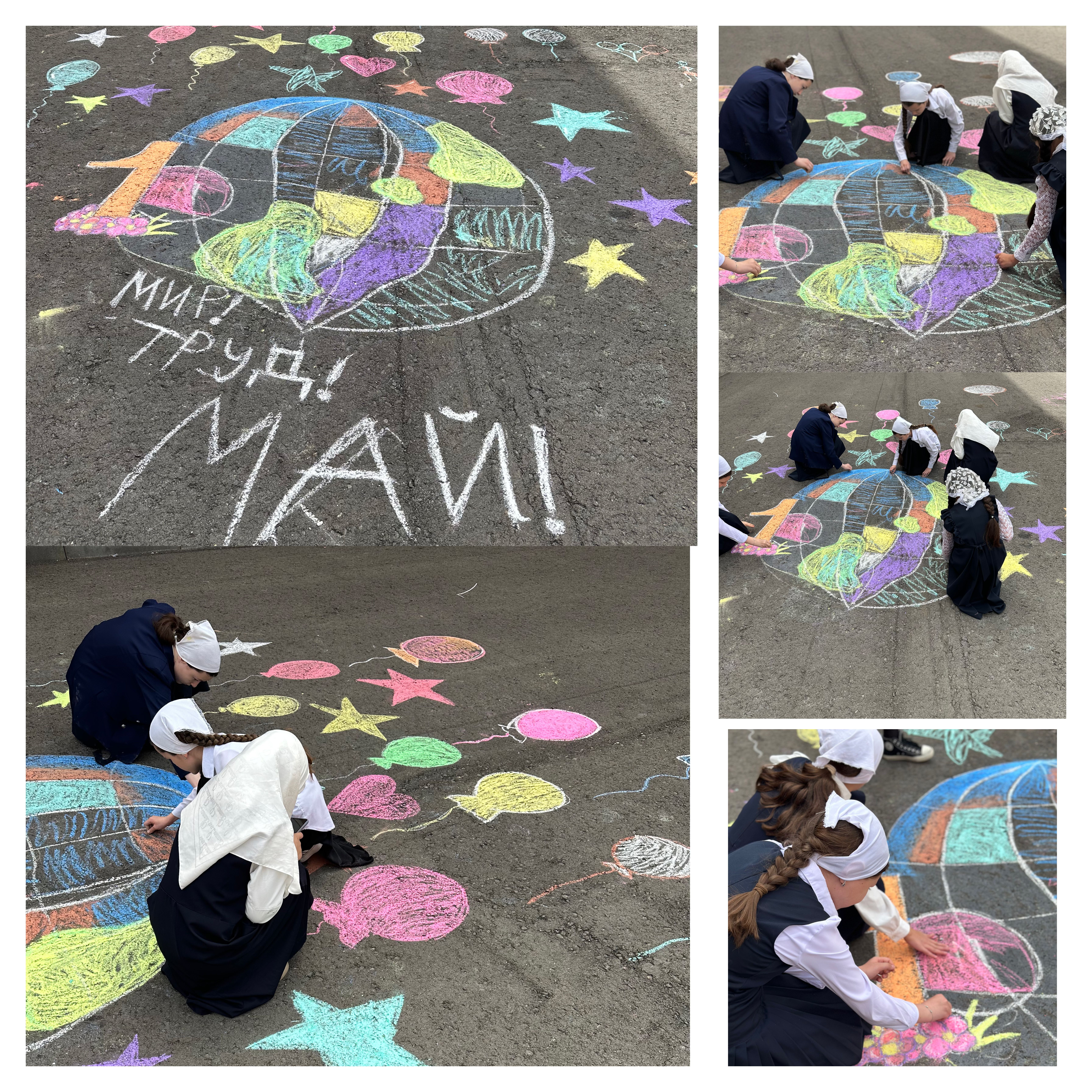 В МБОУ "СОШ №1 с.Алхан-Кала" заместитель директора по ВР Таташева Э.З. провела мероприятие — рисунки на асфальте «Май шагает по планете», посвященное 1 мая празднику Весны и Труда.