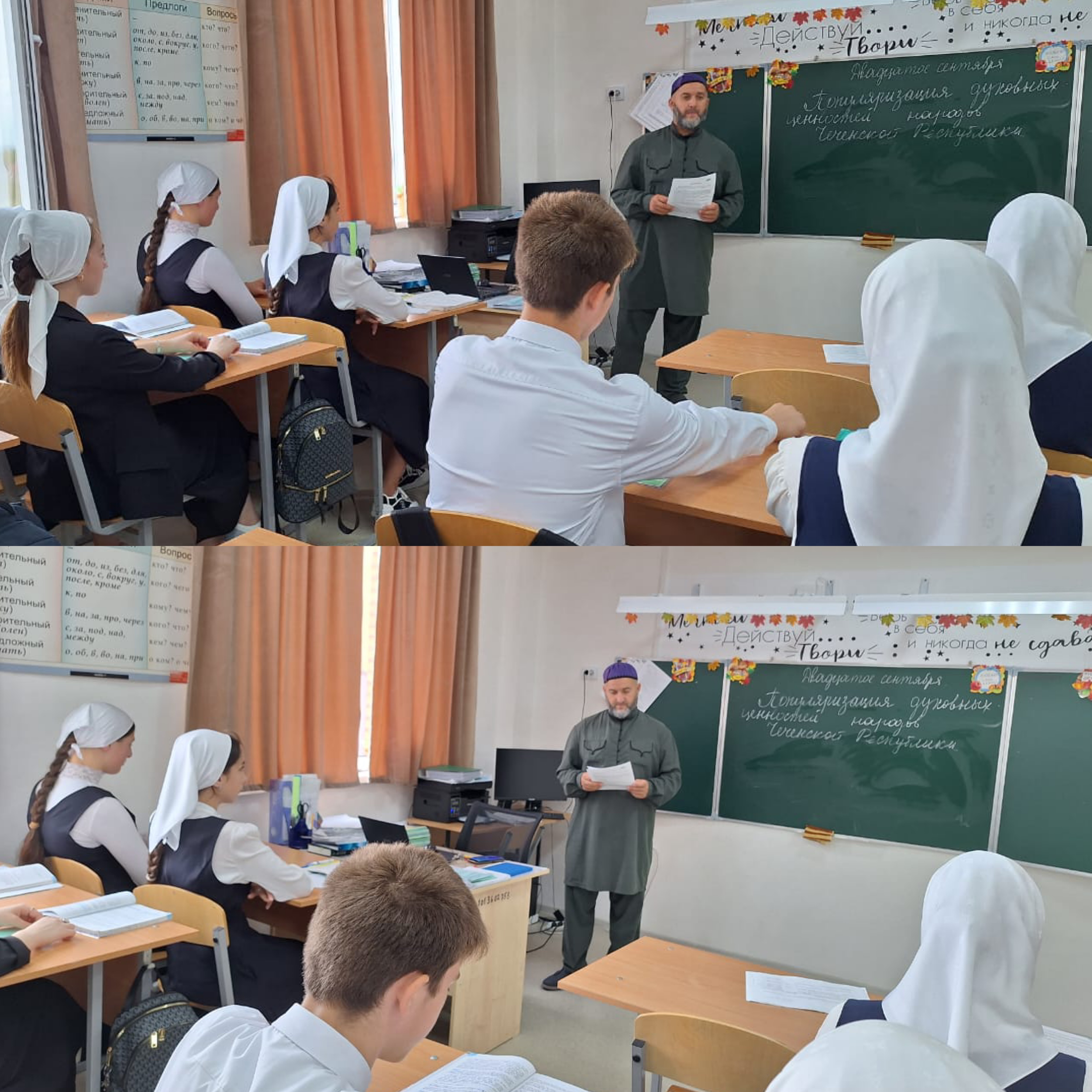 12.09.2024Педагог по ДНВ Хагиев Р.З. Провел беседу по популяризации традиционных духовных ценностей народов Чеченской Республики на тему: «Уважение и почитание к старшим– это главное». Род человеческий состоит из поколений. В мире живут одновременно несколько поколений: уходящее, находящиеся в расцвете творческих сил, выходящее и только что появившееся. Уважение, почитание старших поколений — закон жизни. Уважать старших надо уже потому, что в ней — мудрость многих поколений. Уважают не седины сами по себе, а то что за ними, поэтому всеобщим уважением и почетом должны пользоваться они. Чем больше прожил человек, тем больше он оставил в мире от себя, от своей души, тем высшую ценность представляют для последующих поколений его дела