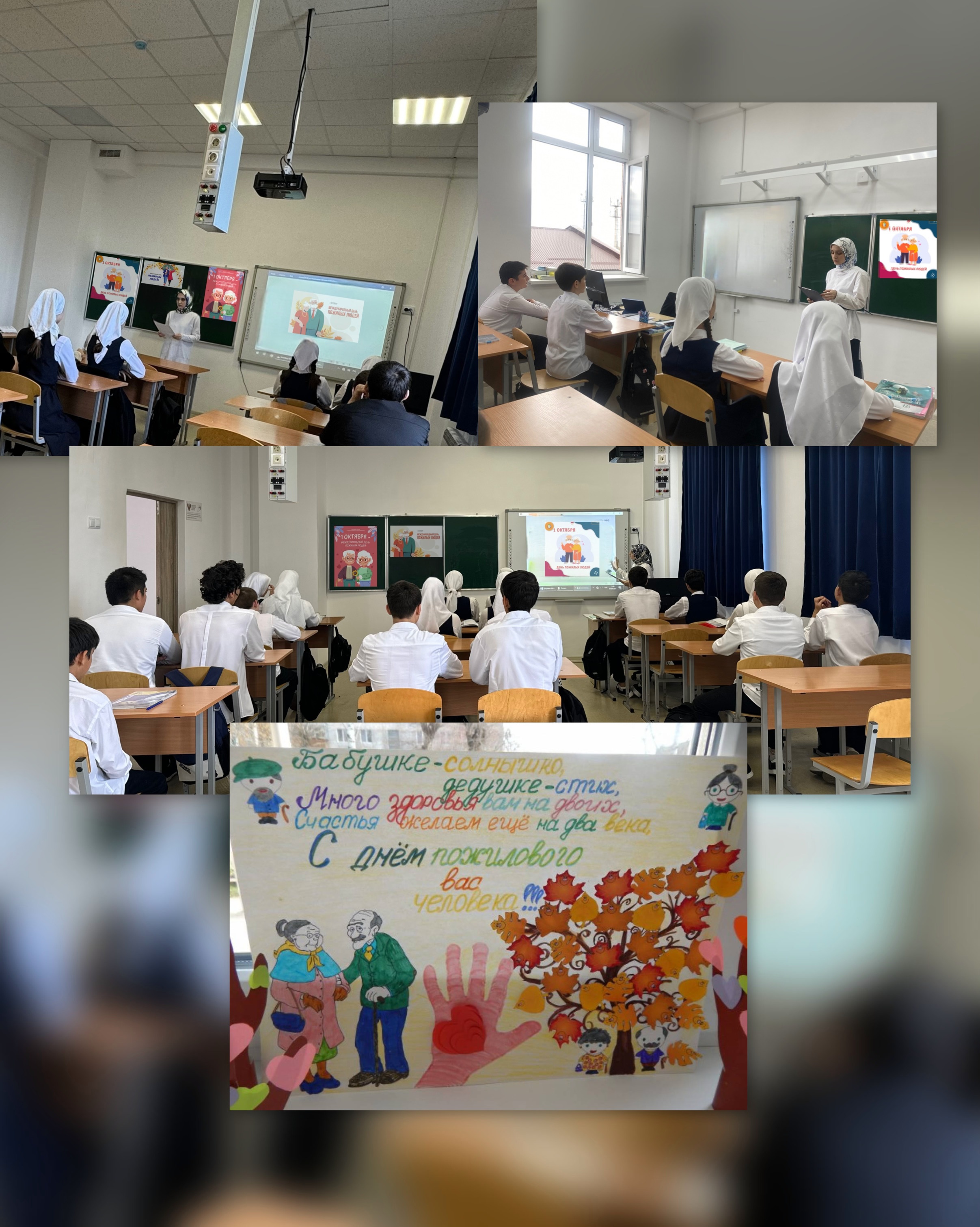 В МБОУ «СОШ №1 с.Алхан-Кала» советником директора по воспитанию и взаимодействию с детскими общественными объединениями были проведены классные часы, посвященные Дню пожилого человека.